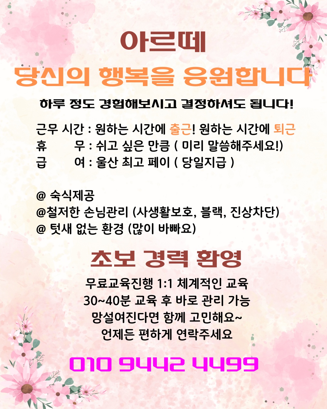 상주/초보/알바/친구/경력/초보 모두 가능하십니다.